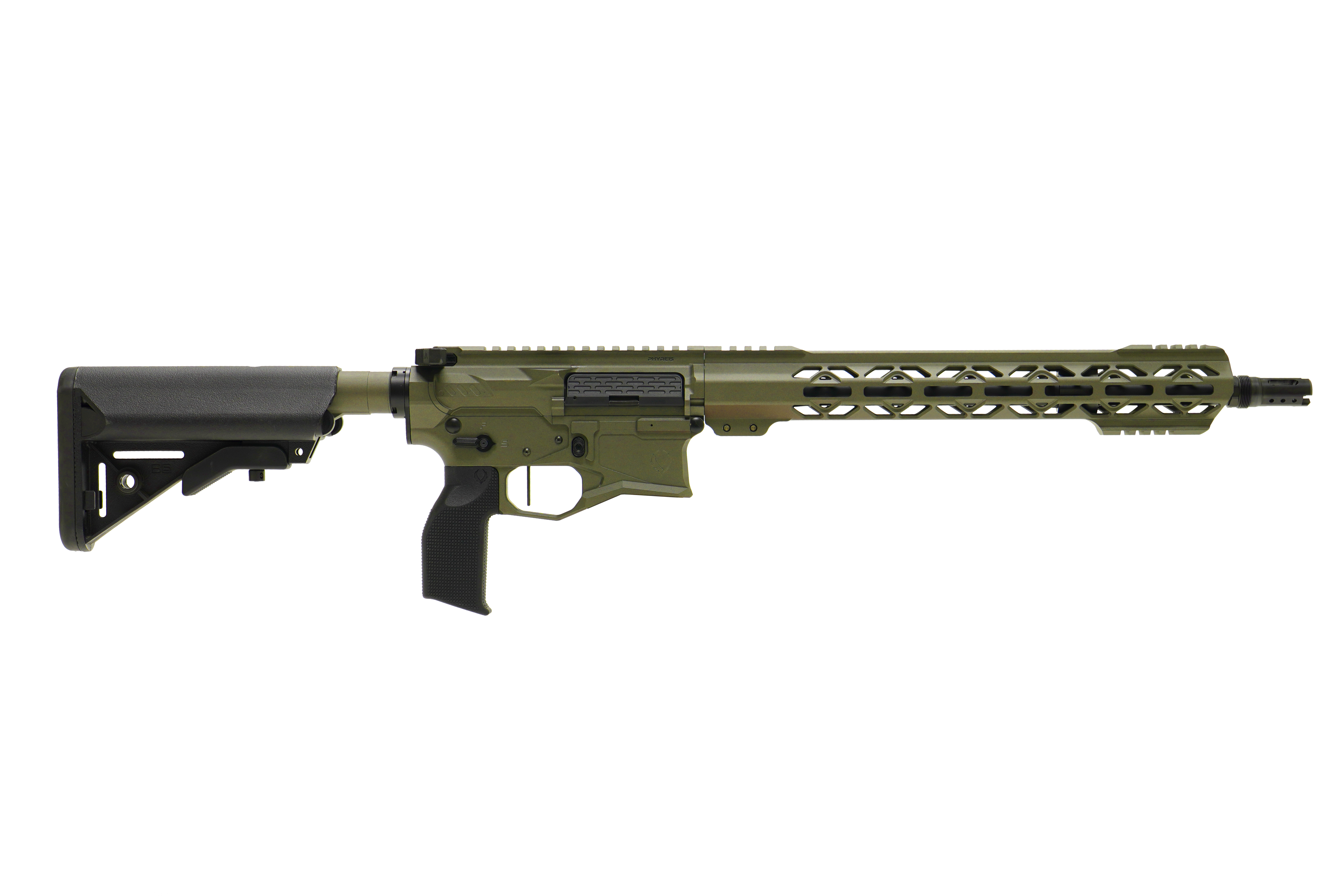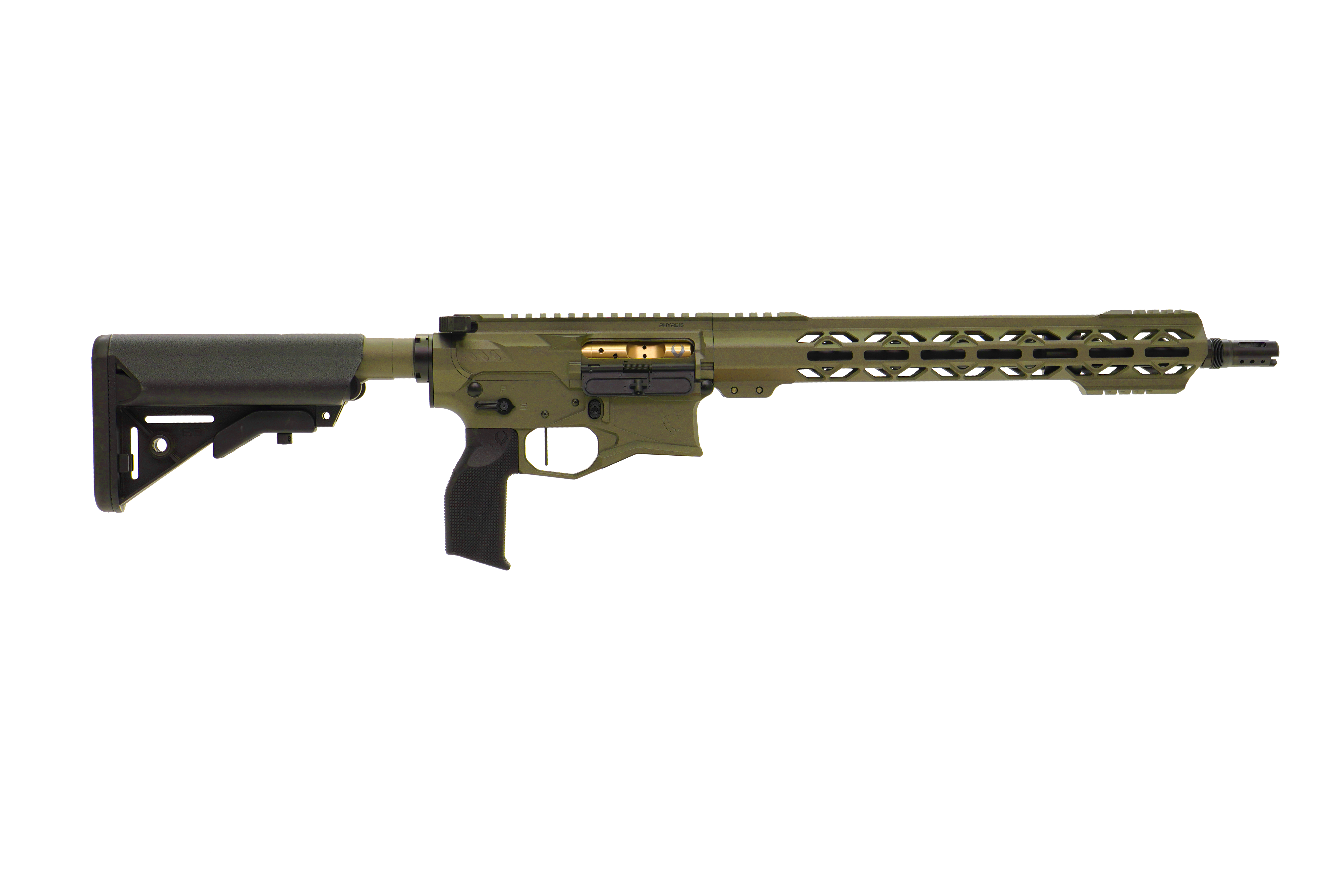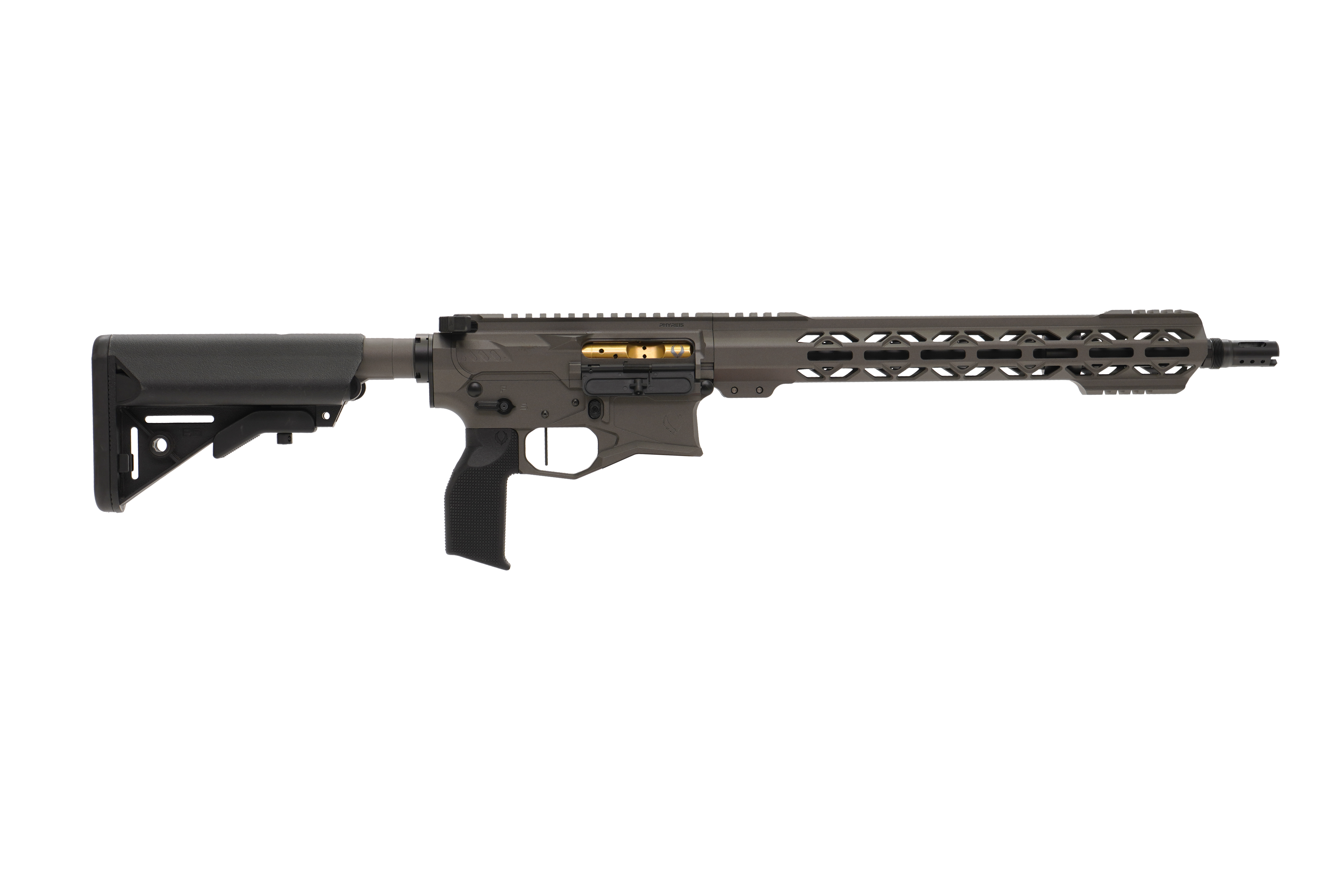 PhyreBird Arms flagship rifle. The PHYRE15 is a premium AR15 that handles all your needs. From home defense to having fun at the range the PHYRE15 won't ever fail you. Featuring our finger-friendly PHYRE Stick handguard and the oversized magwell you can shoot comfortably and never worry about tiring out when training or shooting competitions.
