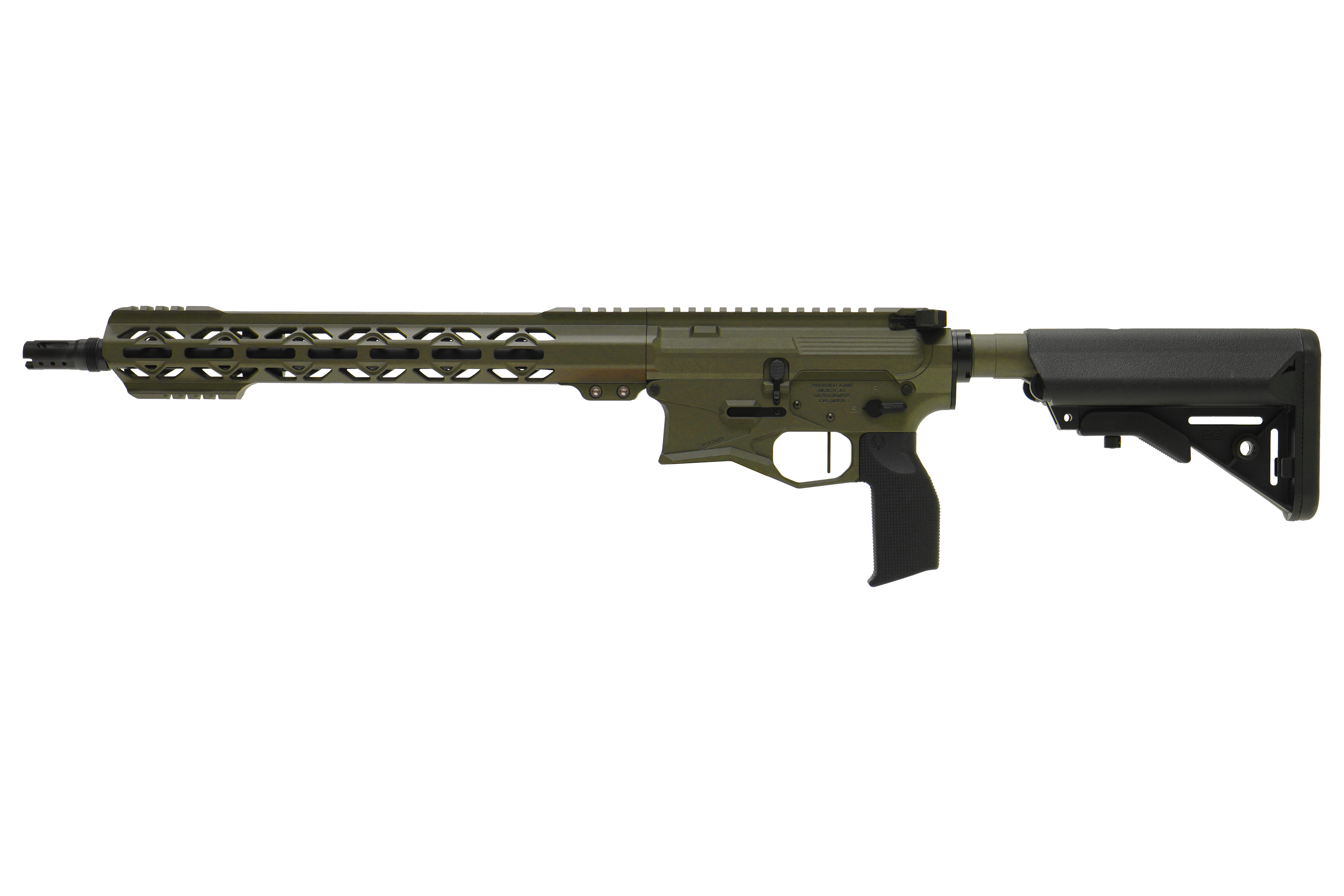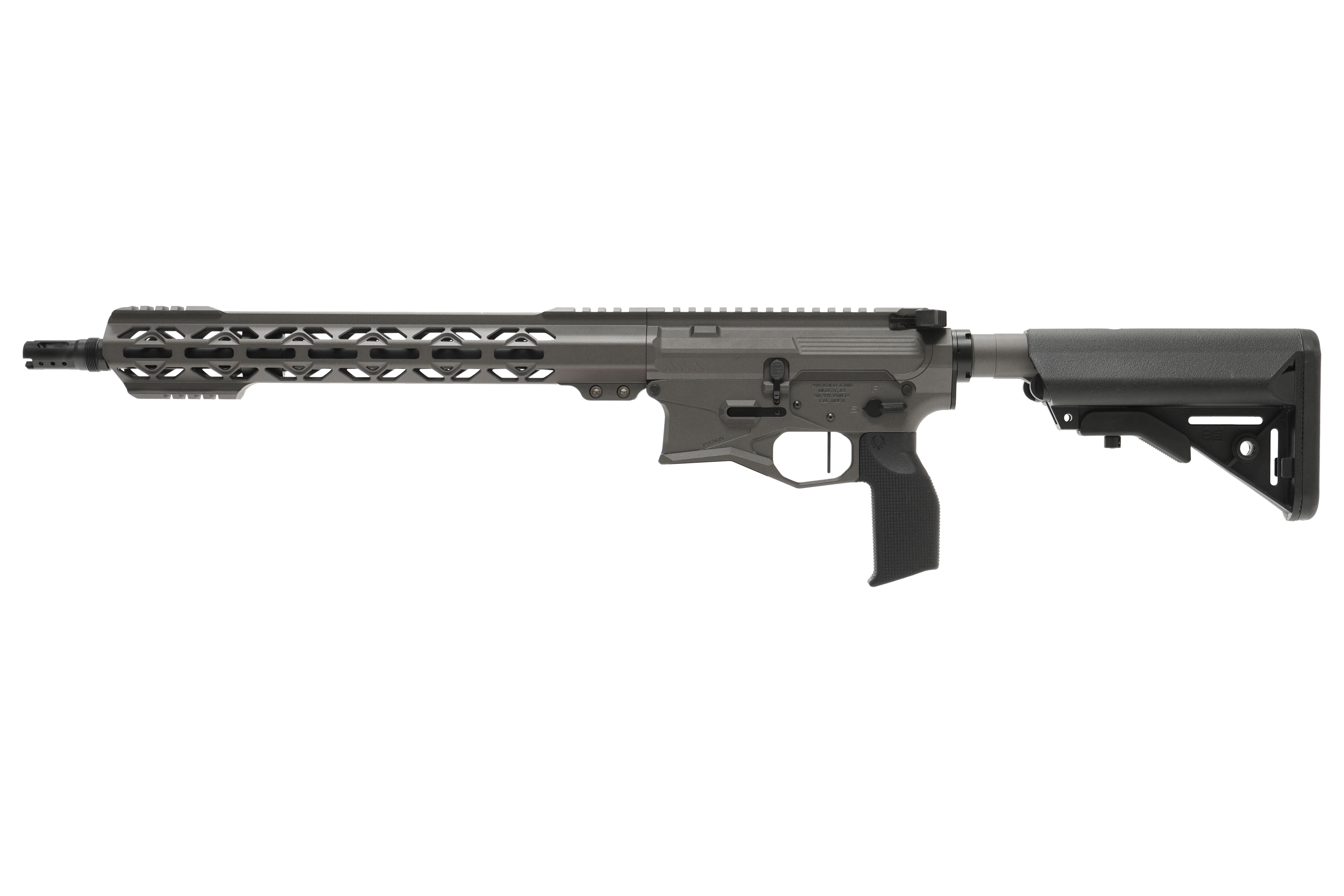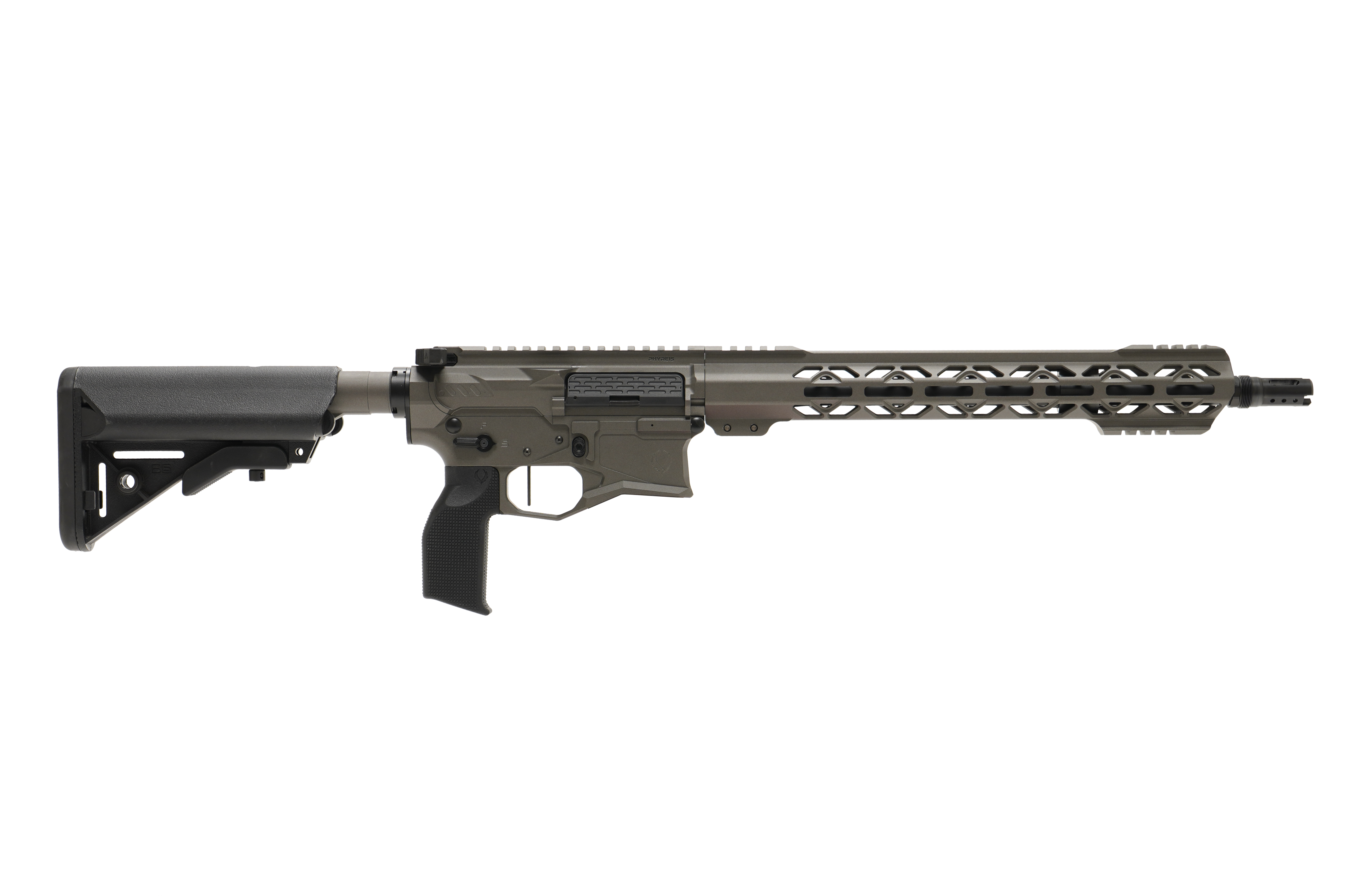 PhyreBird Arms flagship rifle. The PHYRE15 is a premium AR15 that handles all your needs. From home defense to having fun at the range the PHYRE15 won't ever fail you. Featuring our finger-friendly PHYRE Stick handguard and the oversized magwell you can shoot comfortably and never worry about tiring out when training or shooting competitions.
